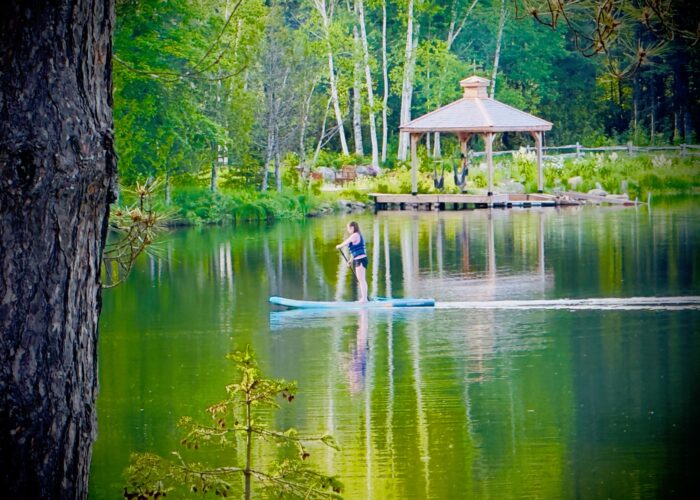 Plan d’eau parfait pour les débutants en planche à pagaie et kayak.