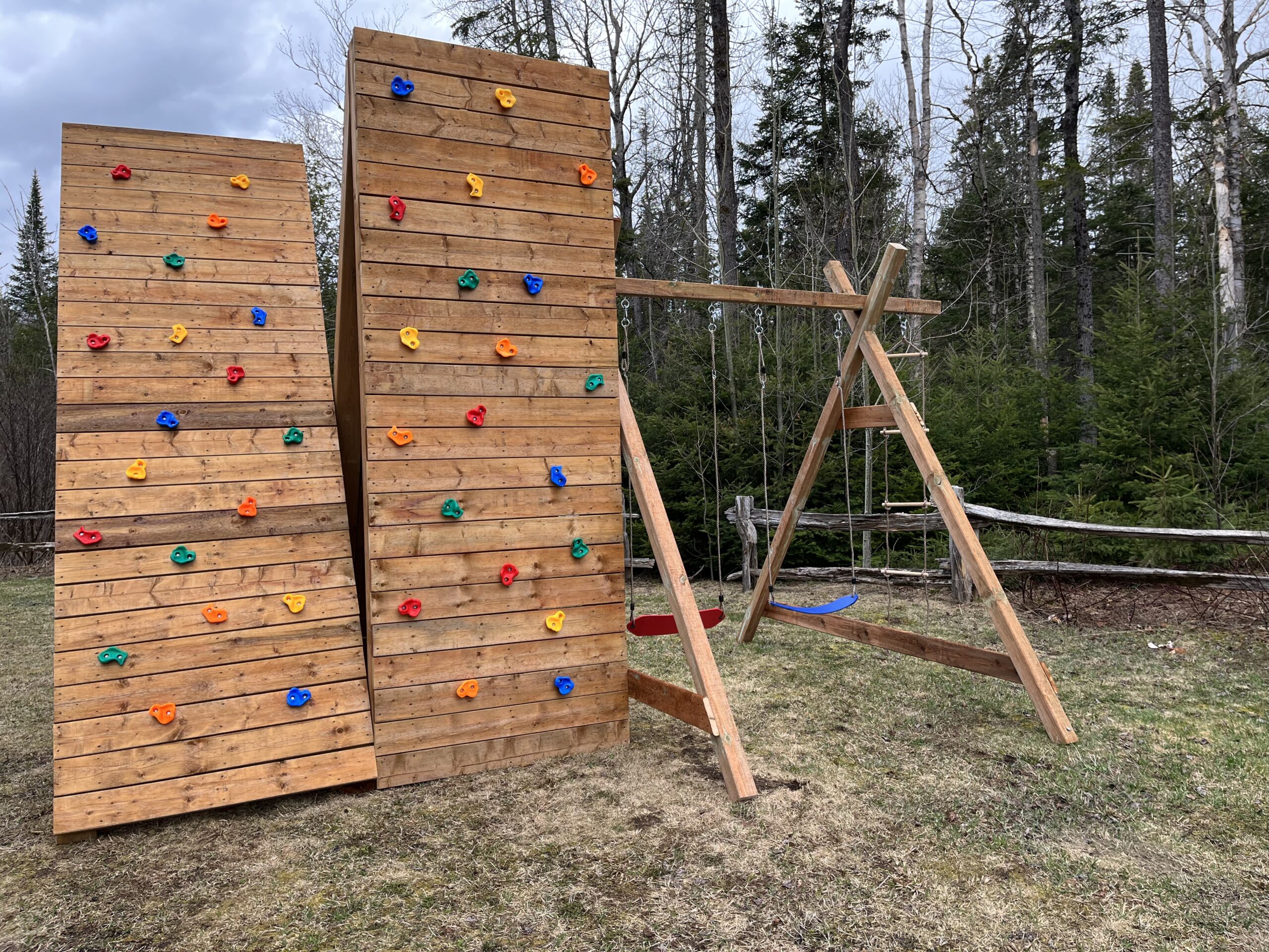 En vous baladant dans les aires communes, prenez le temps de flâner dans les pavillons, les balançoires, admirer les nombreux aménagements paysagers, faites un feu de camp dans les espaces prévus à cet effet, grimper le mur d’escalade, mis à votre disposition durant votre séjour.